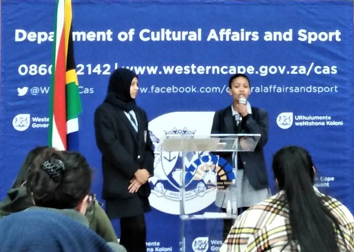 A learner in Gr 11B representing Alexander Sinton at the official unveiling of the Trojan Horse Massacre as a provincial heritage site.